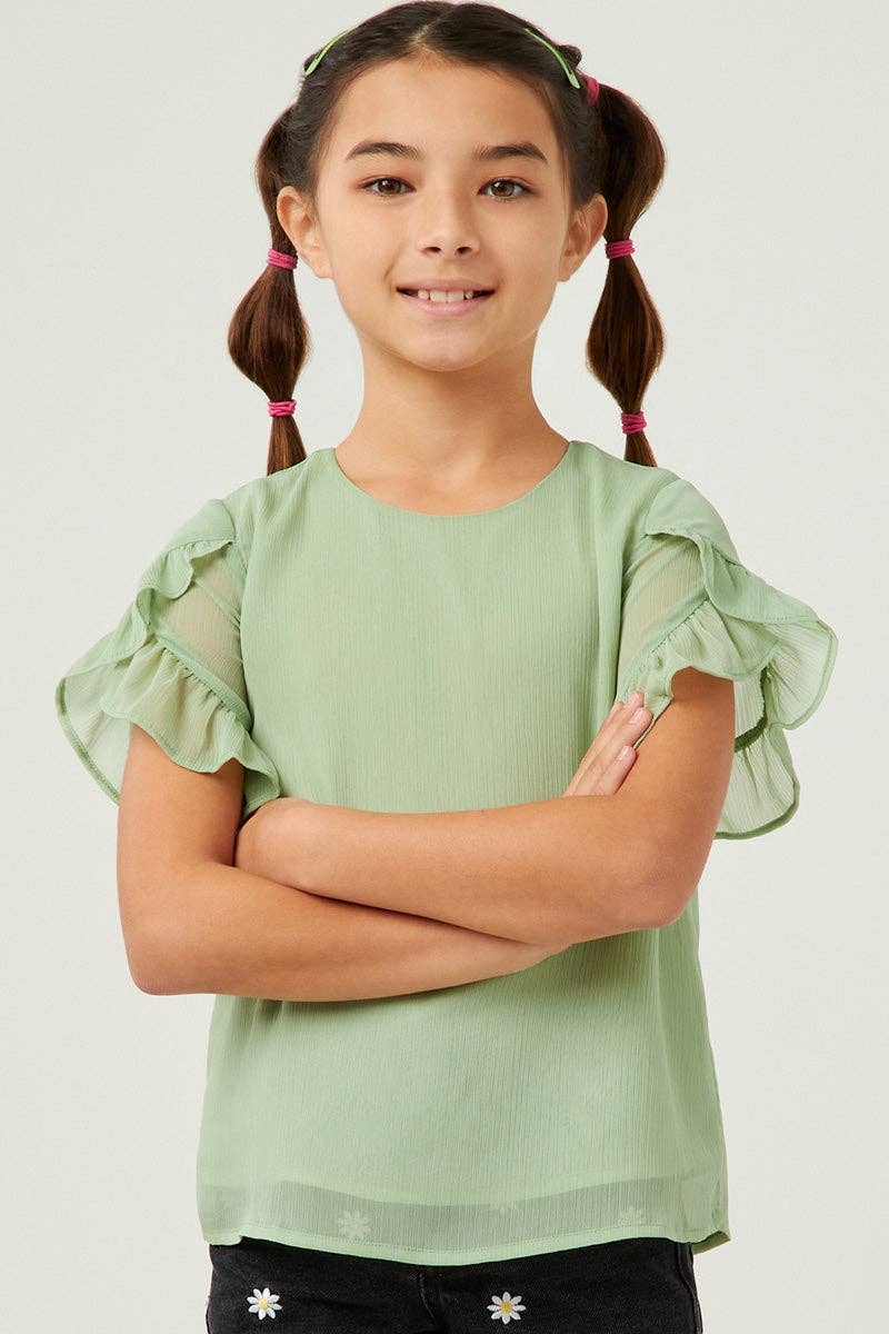 Our Sheer Tulip Sleeve Top Features Woven Fabric, Ruffle Sleeves, Top Lined