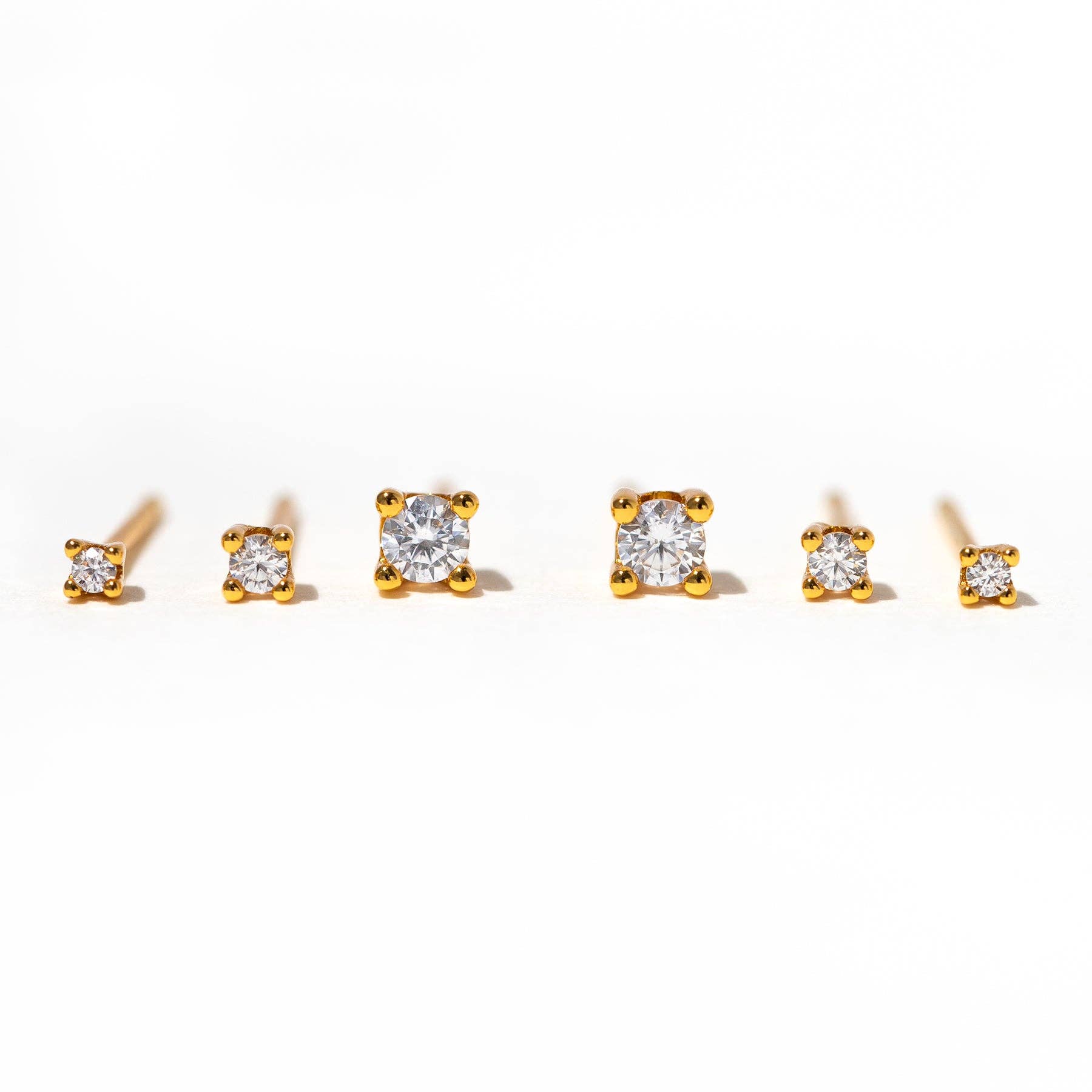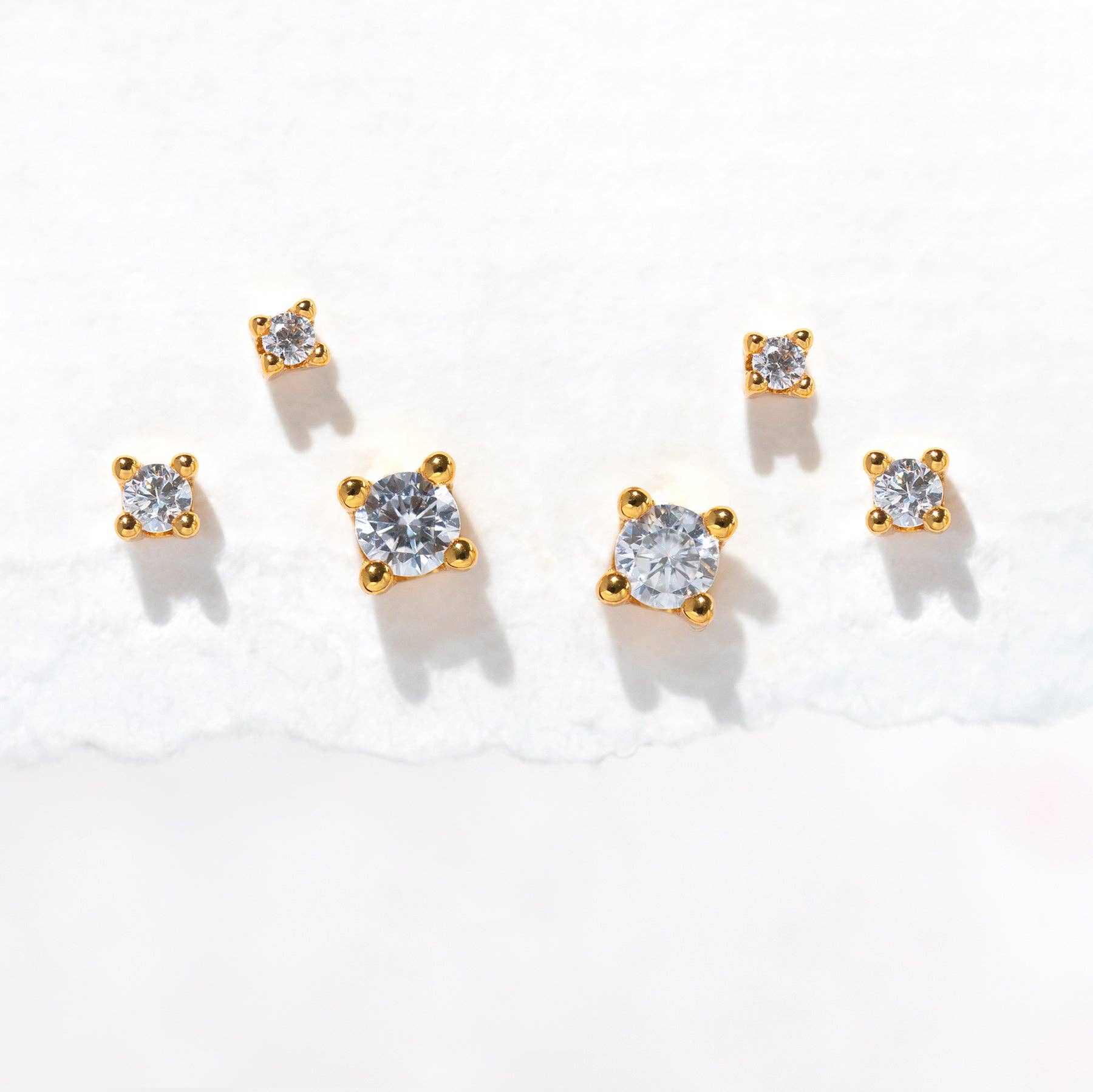 Indulge in the best of both worlds, simplicity and radiance, with our Classic Radiance Earring Set. The set features three pairs of dazzling cubic zirconia studs in different sizes, adding a subtle sparkle to your everyday style. Wear each pair together or separately & layer them with your favorite Girls Crew pieces to create your own unique look. This set is like the little black dress of your jewelry collection--simple, yet versatile and timeless. * 18k gold plated, or rhodium plated over brass with a protective coating * 3mm, 2mm, 1mm stud's diameter * Cubic zirconia stones * Includes 3 pairs of studs * Shop our entire GC Essentials Collection here!