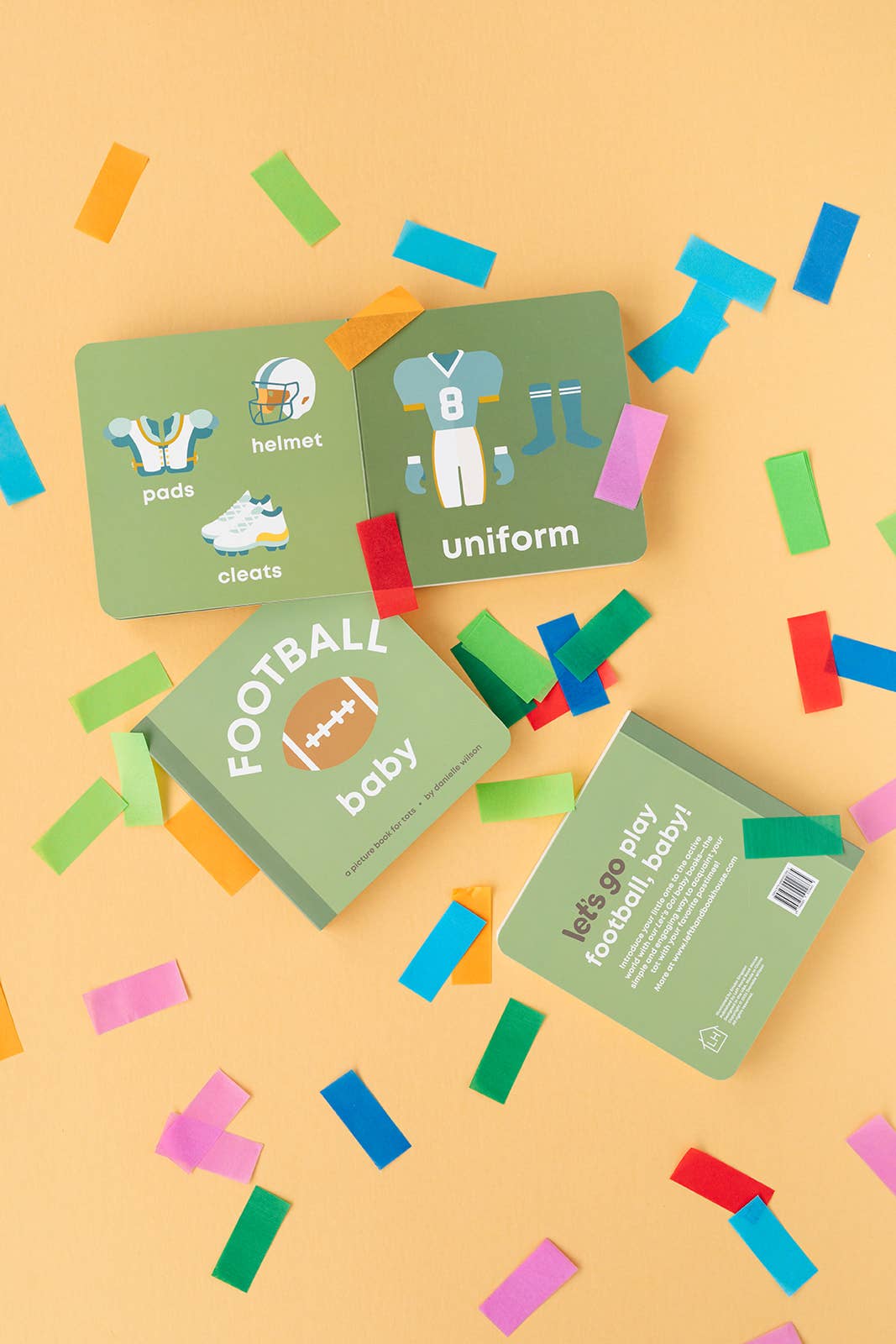 Touchdown! Introduce your little one to America's favorite sport with the Football book from our Let's Go! series. Each book contains clear and simple images to get your tot acquainted with your favorite pastime. Ages 0-4 Details *5.5"x5.5"x.5" Board Book *triple layered pages for extra durability *matte finish *16 pages *written by Danielle Wilson *illustrated by Ericka Singson *designed in USA *printed in China