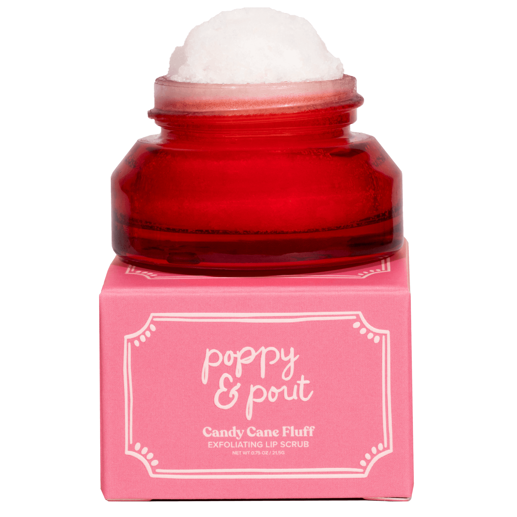 Our Candy Cane Fluff lip scrub is the perfect combination of peppermint and marshmallow fluff and it is sure to put you in the holiday spirit! Say goodbye to dry lips, our limited-edition holiday lip scrubs are sure to keep your lips exfoliated and smooth all season long. For best results, pair with a hydrating lip balm. Poppy & Pout's Exfoliating Lip Scrubs are the perfect way to prep your pout for smooth, hydrated lip balm application. We use a clean combination of natural ingredients to help clean and gently exfoliate your lips. Net Weight 0.75 / 21.5g