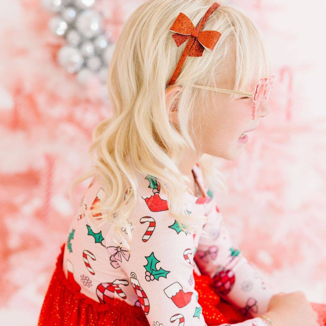 Every little girl needs the perfect headband to complete her look! Red Glitter Bow Headband is the perfect hair accessory for adding a touch of sparkle to any outfit.